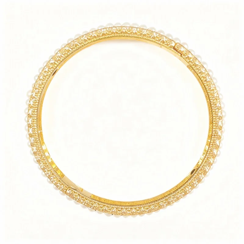 14K Gold Freshwater Pearl Bracelet Bangle for Women (6cm)