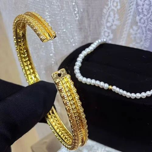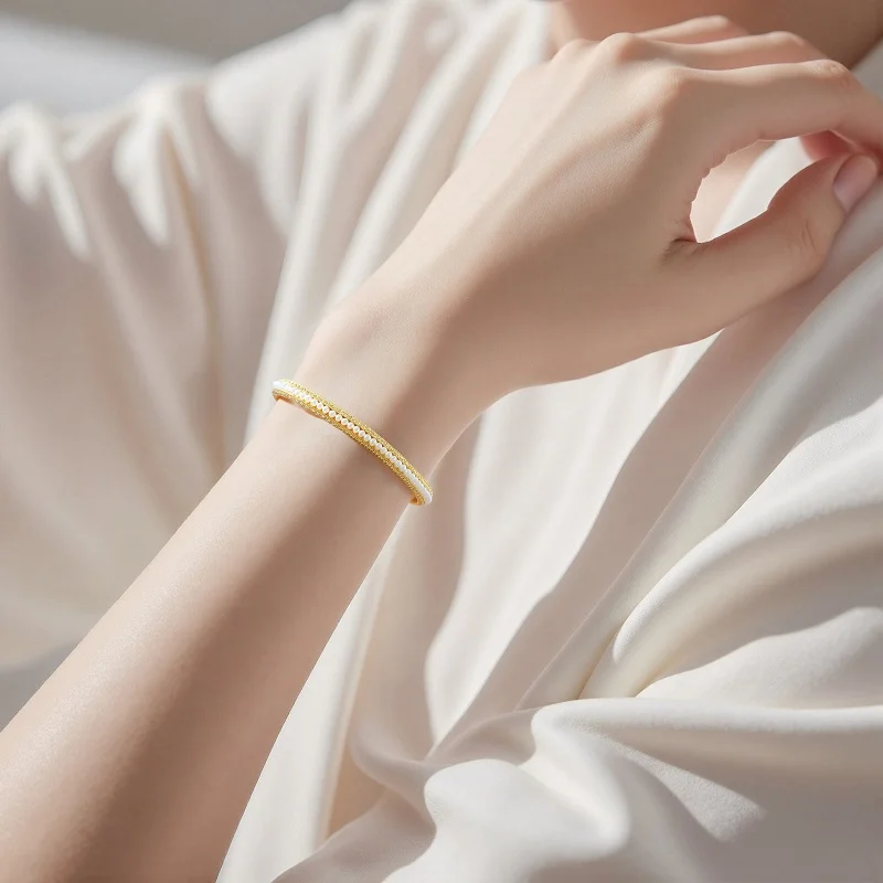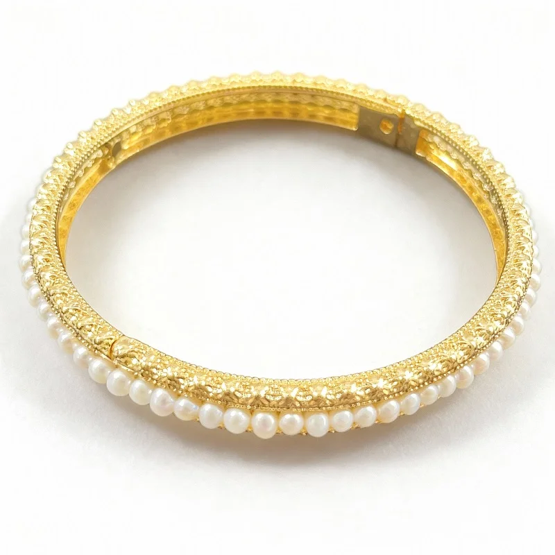 14K Gold Freshwater Pearl Bracelet Bangle for Women (6cm)