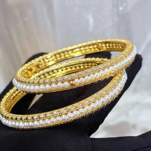 Radiate timeless elegance with this exquisite 14K gold freshwater pearl bangle, a piece designed to balance classic sophistication with modern luxury. Perfect for the woman who appreciates refined details, this bangle serves as both a standout statement and a versatile everyday staple. Luminous Freshwater Pearls: Features hand-selected, high-luster freshwater pearls known for their brilliant white tones and smooth, organic surfaces. 14K Gold Craftsmanship: Expertly crafted with genuine 14K gold, offering a rich, warm glow and lasting durability that resists tarnishing. Precision Sizing: The 6cm (approx. 2.36 inches) inner diameter is tailored for a secure, comfortable fit on smaller to medium wrists, ensuring the bangle stays elegantly in place. Modern Bangle Silhouette: A sleek, polished gold band provides a minimalist backdrop that allows the natural beauty of the pearls to take center stage. Size: 6 cm/2.36″ Wear: Take off stretch pearl bracelet first, open magnetic bangle bracelet and wear it, then add stretch pearl bracelet. Note: This bracelet is not resizable and only suitable for ladies with wrist size less than 16.5 cm (6.5″). Shipping Policy: We provide fast, free, and fully insured shipping on all order destinations, regardless of order amount. Click here for detailed information. Return Policy: Click here for detailed information. Jewelry Care: Click here for detailed information.