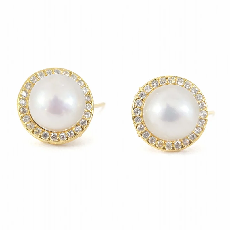 Elevate your jewelry collection with these 18K gold plated freshwater cultured pearl stud earrings. Balancing classic sophistication with a bold modern scale, these 1cm (10mm) studs are designed to make a statement while remaining effortlessly wearable.. Lustrous Gemstones: Features genuine white freshwater cultured pearls, hand-selected for their brilliant nacre and natural sheen. Statement Size: At 1cm (10mm) in diameter, these pearls offer a “large” profile that stands out more than traditional 7-8mm studs, making them ideal for both bridal looks and upscale professional wear. Premium Finish: The settings are expertly plated in 18K gold over high-quality sterling silver and brass, providing a rich, warm glow that mimics solid gold at a more accessible price point. Hypoallergenic Design: Crafted with nickel-free and lead-free materials to ensure comfort for those with sensitive skin. Secure Fit: Equipped with traditional 925 sterling silver push-backs for a snug, all-day fit. Size: 1cm*1cm/0.394″*0.394″ Shipping Policy: We provide fast, free, and fully insured shipping on all order destinations, regardless of order amount. Click here for detailed information. Return Policy: Click here for detailed information. Jewelry Care: Click here for detailed information.