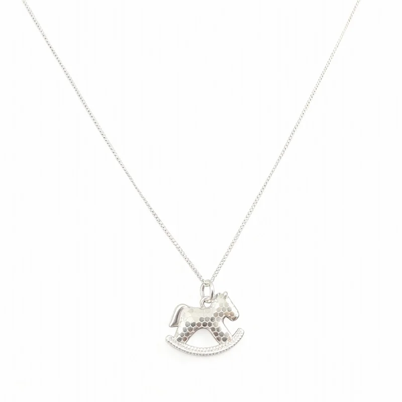 925 Silver Choker Necklace with Rocking Horse Pendant (45cm)