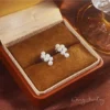 Cultured Freshwater Pearl Floral Stud Earrings in 925 Sterling Silver (3-4mm)