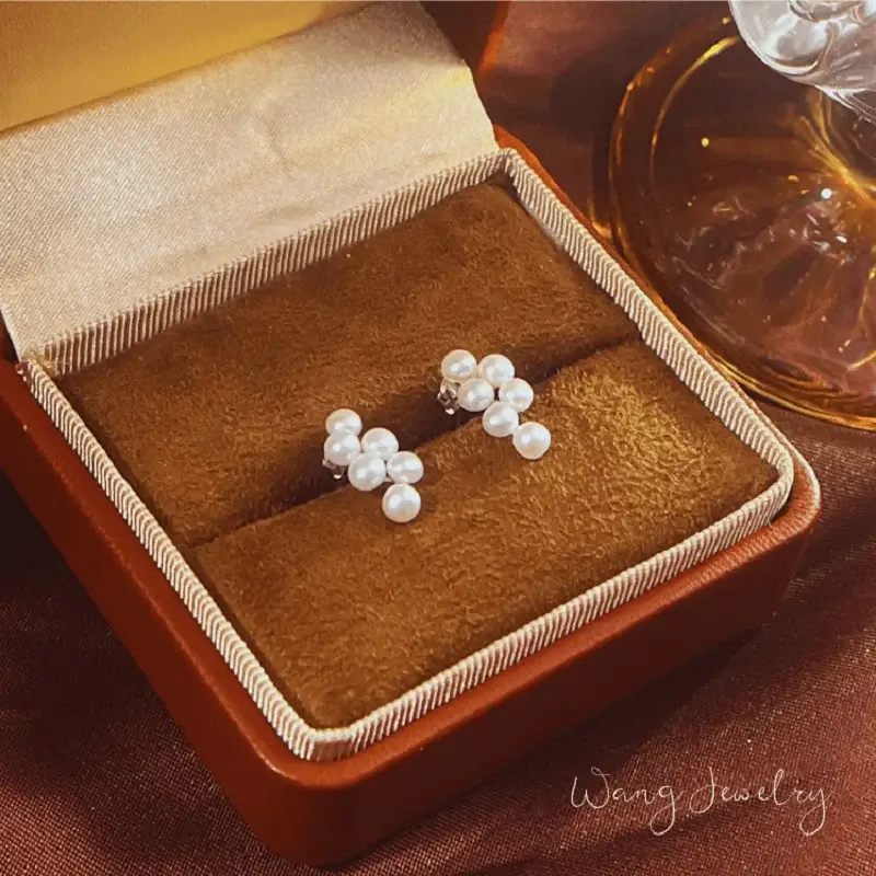 Discover the understated elegance of our cultured freshwater pearl floral stud earrings. Crafted to capture the delicate beauty of nature, these earrings offer a fresh, feminine take on classic pearl jewelry. Each earring features six lustrous 3-4mm cultured freshwater pearls arranged in a charming floral motif, centered with a subtle sterling silver accent. The result is a design that is both playful and sophisticated, perfect for seamlessly transitioning from a busy workday to a special evening out.