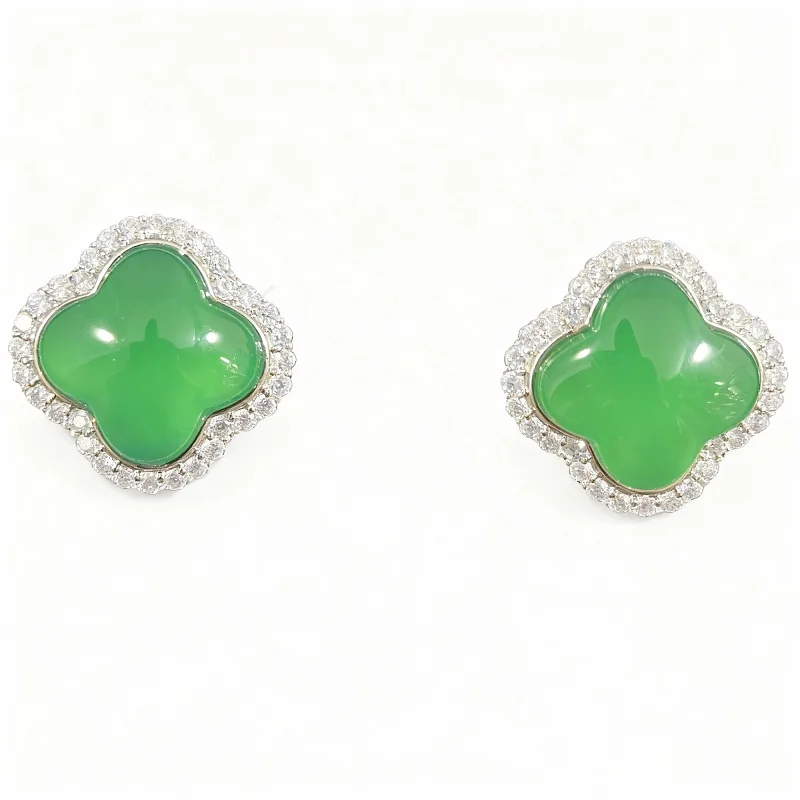 The four-leaf clover is an internationally recognized emblem of good luck, faith, hope, and love. Each leaf is said to represent one of these precious virtues. When combined with natural green jade, a gemstone cherished for centuries as a “lucky stone” and talisman of prosperity, these earrings become a powerful and meaningful token designed to attract positive energy and fortune into your life.