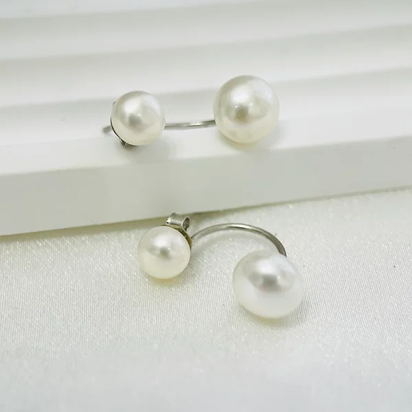 With sustainable fashion ethics in mind, this dainty 7.5-9.5mm freshwater cultured double pearl stud earrings use only high-quality pearls and recyclable silver. Offering a gorgeous pair of pearls for each ear, these earrings can be an incredible selection for any occasion. Size: 0.95cm*2cm/0.374″*0.787″ Radiant Freshwater Pearls: Each earring showcases two hand-selected, AAA-quality pearls. The 7.5mm pearl offers a delicate, subtle glow, while the larger 9.5mm pearl provides a bold, luxurious presence that captures the light with every movement. Exquisite Craftsmanship: Set in high-polish 925 sterling silver, these earrings are as durable as they are beautiful. The sterling silver base is naturally hypoallergenic, nickel-free, and lead-free, ensuring a comfortable fit for even the most sensitive skin. Versatile Design: Whether you are attending a black-tie gala or adding a touch of class to your daily office attire, the dual-pearl design transitions seamlessly from day to night.