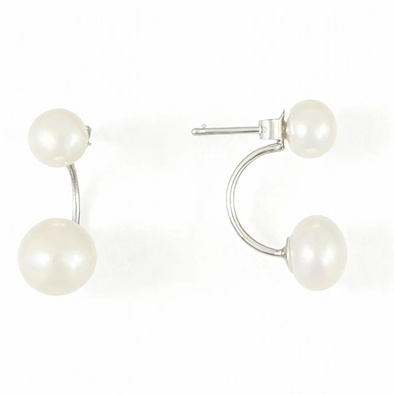 Freshwater Cultured Double Pearl Stud Earrings in 925 Sterling Silver (7.5mm and 9.5mm)