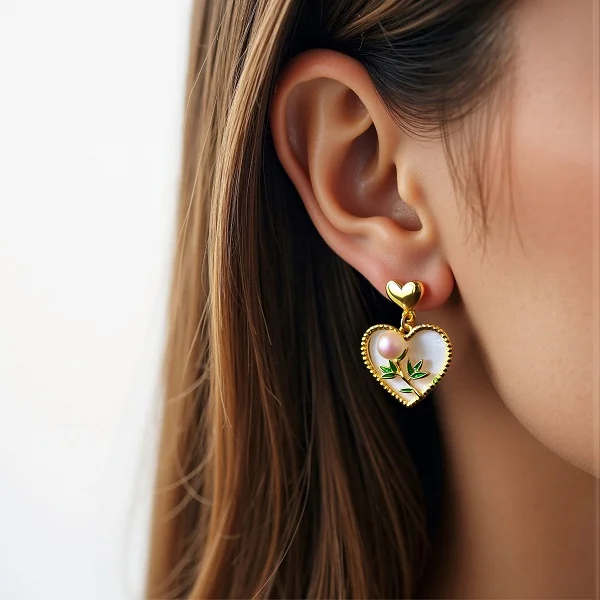 Radiate timeless romance with this exquisite heart-shaped freshwater cultured pearl earrings in luxurious 18K gold. This piece is more than just jewelry; it’s a symbol of pure affection and refined sophistication. Unique Heart-Shaped Set: Unlike traditional pearl earrings, these beautiful earrings are handmade with high-quality pearls and mother-of-pearl to achieve their romantic silhouette. Each earring possesses its own natural iridescence and high-luster finish. Lustrous 18K Gold: Filled with 18K solid gold (75% pure gold), offering a rich, warm glow that won’t tarnish and is safe for sensitive skin. Artisanal Craftsmanship: Each genuine freshwater pearl is hand-selected for its quality and brilliance, ensuring no two pieces are exactly alike. Versatile Elegance: Its minimalist yet striking design allows it to transition effortlessly from everyday office wear to formal wedding attire. Size: 1.5cm*2.5cm/0.591″*0.984″ Shipping Policy: We provide fast, free, and fully insured shipping on all order destinations, regardless of order amount. Click here for detailed information. Return Policy: Click here for detailed information. Jewelry Care: Click here for detailed information.