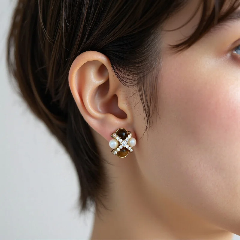 Elevate your everyday accessories with the powerful elegance of these 1.5cm tiger eye and freshwater pearl studs. Cast in solid 14K gold, these earrings are designed for those who appreciate high-quality tigers eye jewelry with a refined, designer edge. Unlike standard sterling silver pearl stud earrings, these gold studs provide a rich backdrop for the striking “cat’s eye” effect of the tiger eye stones. These tiger’s eye earrings are the perfect size for comfortable, all-day wear, offering a unique architectural silhouette that feels both modern and timeless. Add a touch of grounded luxury to your wardrobe with stones known for their strength and clarity.. Size: 1.5cm*1.5cm/0.591″*0.591″ Shipping Policy: We provide fast, free, and fully insured shipping on all order destinations, regardless of order amount. Click here for detailed information. Return Policy: Click here for detailed information. Jewelry Care: Click here for detailed information.