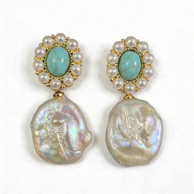 Discover the perfect fusion of earthy texture and high-seas luxury with our 3.5cm turquoise and baroque pearl drops. Cast in genuine 14K gold, these exquisite turquoise earrings showcase the bold character of baroque freshwater pearls, celebrated for their irregular, non-spherical shapes and deep luster. This design draws inspiration from vintage baroque pearl earrings, offering a classic aesthetic that feels both regal and bohemian. The elongated 3.5cm length provides a graceful swing, making them the ultimate choice for those who love turquoise chandelier earrings but prefer a more streamlined, elegant drop. Experience the beauty of natural inclusions and organic forms with a pair of earrings designed to last a lifetime. Size: 1.5cm*3.5cm/0.59″*1.38″ Shipping Policy: We provide fast, free, and fully insured shipping on all order destinations, regardless of order amount. Click here for detailed information. Return Policy: Click here for detailed information. Jewelry Care: Click here for detailed information.